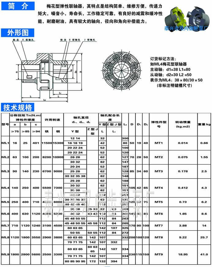ML梅花型弹性联轴器