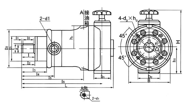 结构原理简述 SCY型轴向柱塞泵,其原理为转动手轮使变量活塞上下移动,带动变量头倾斜角变化,改变柱塞行程长短,达到变量的目的。这种变量型只适用于不频繁变量,而且不需要远距离操纵的情况下。 结构图 |