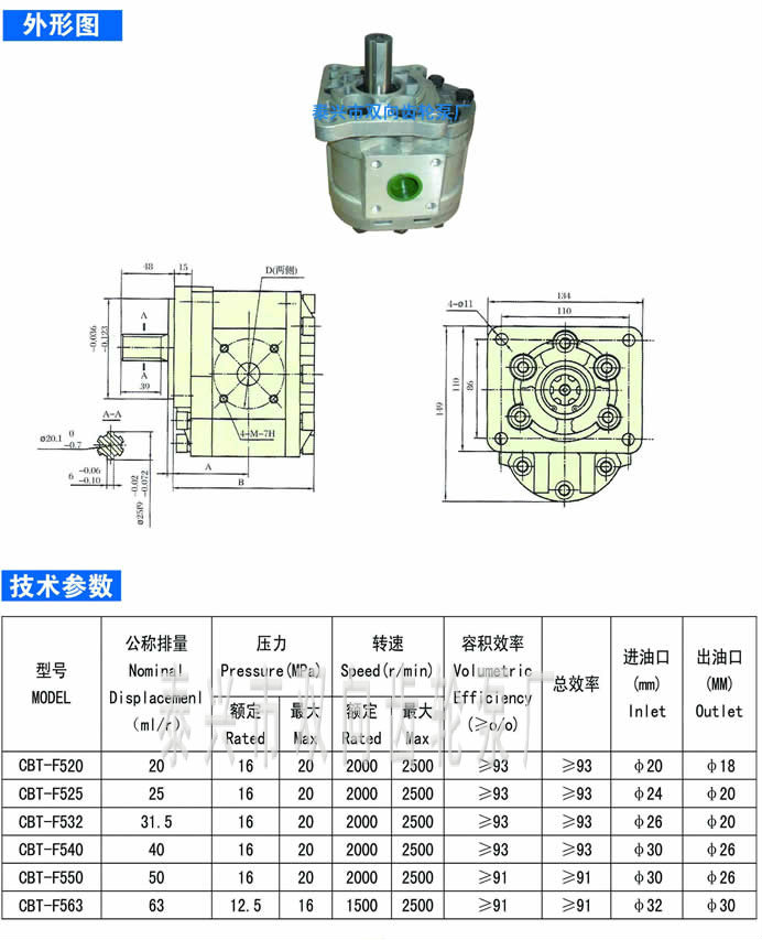 CB-B160~500低噪音圆形大流量齿轮油泵
