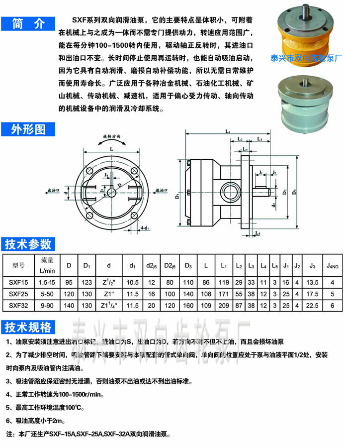 SXF系列双向润滑油泵