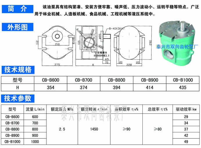 CB-B600~1000低噪单圆形大流量齿轮油泵
