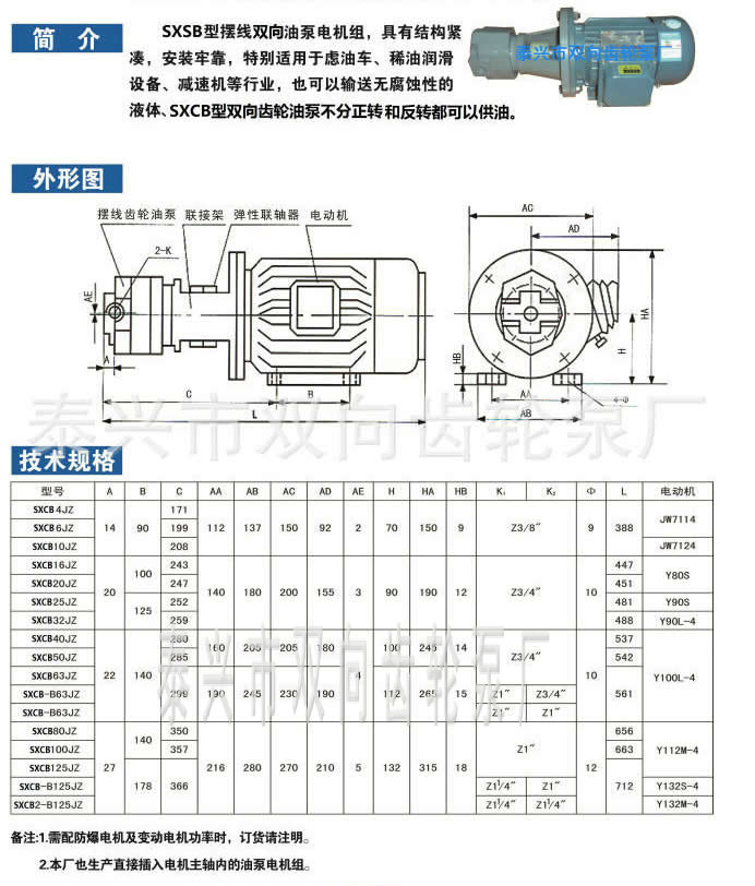 SXCB摆线双向齿轮泵电机组(立卧式)